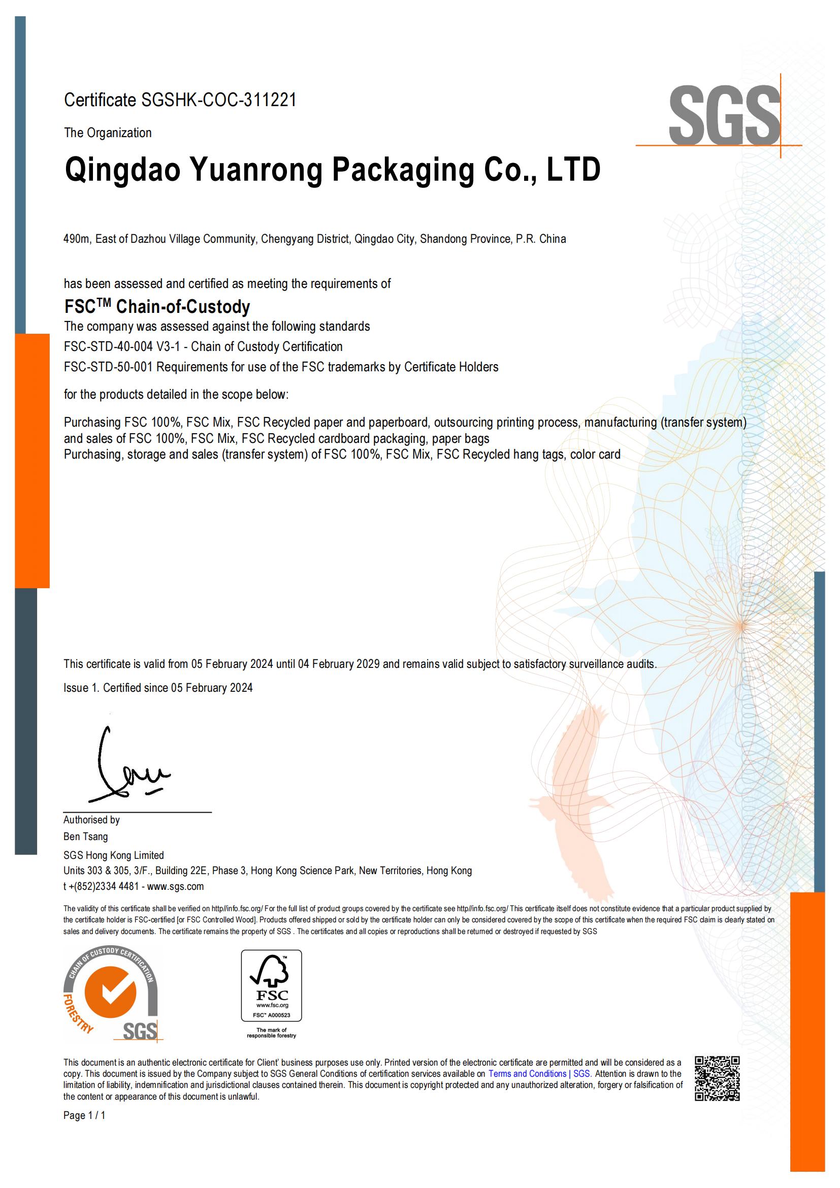 Shandong Yuanrong environmental protection Technology Co., LTD is located in the heart of Qingdao,China,which has more than 20+years of experience in printing and packaging and owns 69 equipments and 20000 square meter factory. SGS and FSC certifiction approved. Its state of the art facility offers a wide range of printing and packaging solutions including the manufacturing of books,cosmetics and customized finishings,as well as OEM/ODM services to both its foreign and domestic partners.